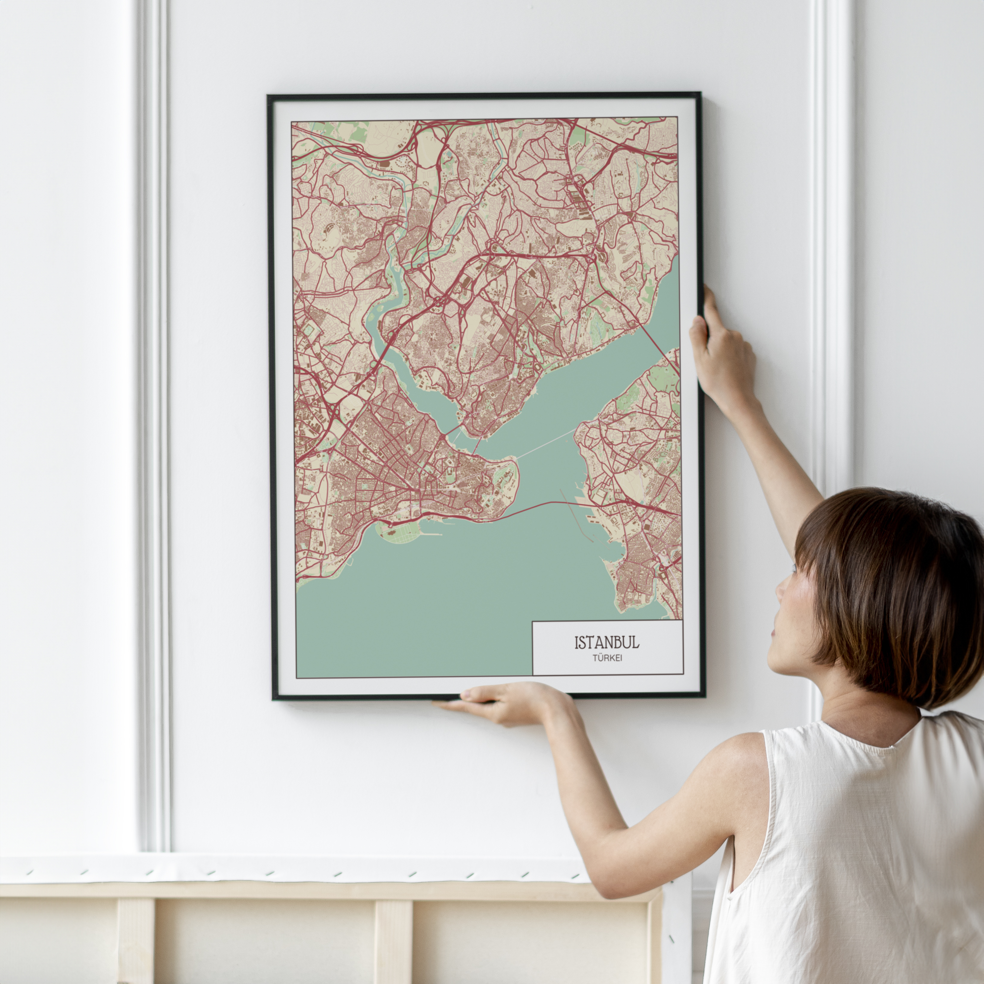 Neben der Auswahl des Ortes, kannst du aus einer Vielzahl von Stilen und Farbschemata wählen, um dein Stadtposter genau auf deine Einrichtung abzustimmen. Füge Text hinzu, um es weiter zu personalisieren und wähle aus unterschiedlichen Formaten und Größen, um es perfekt in deinen Raum zu integrieren.