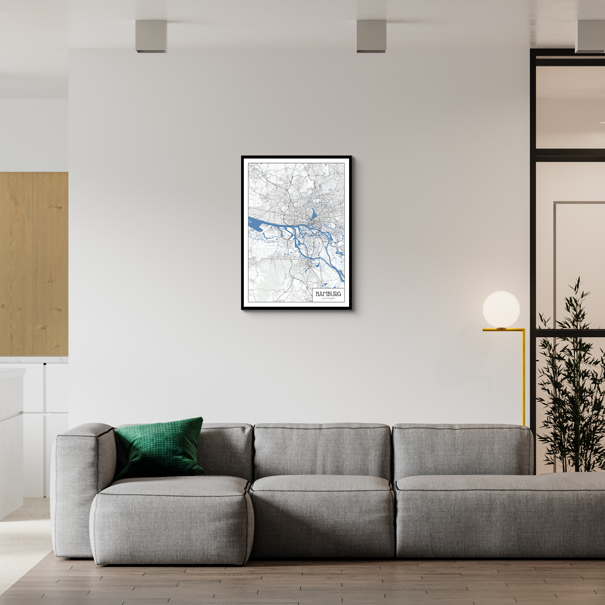 Erstelle deine persönliche Stadtkarte von jedem Ort: Hamburg im Architek-Stil; Druck auf Poster, gerahmt, Leinwand, Acryl oder Alu-Dibond